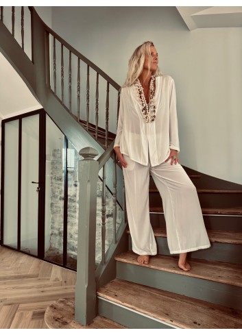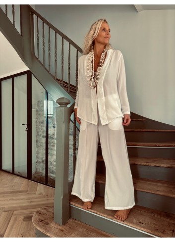 - Veste fluide en panne de velours de soie blanche à porter en costume avec le pantalon