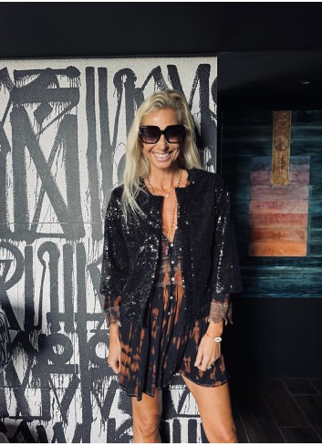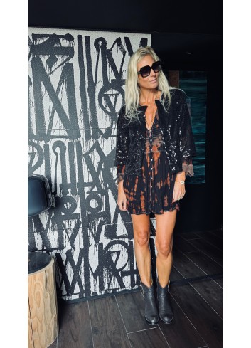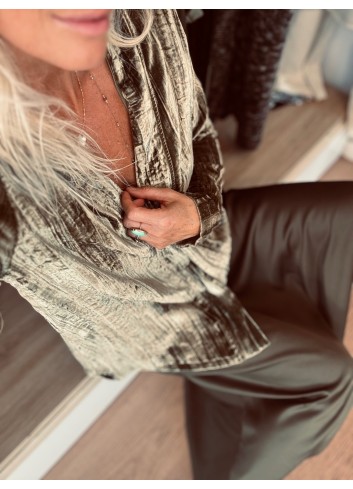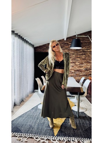- Veste fluide en panne de velours de soie mordorée kaki à porter en total look avec le pantalon ou la jupe assortie ou depareillée