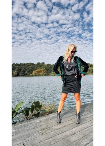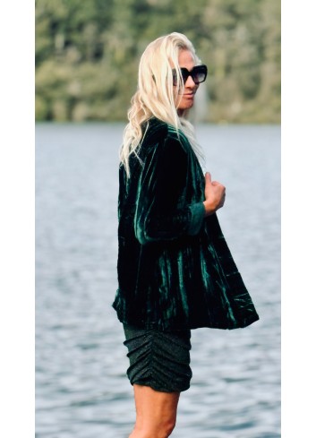 - Veste fluide en panne de velours de soie émeraude à porter en total look avec le pantalon ou la jupe assortie ou depareillée