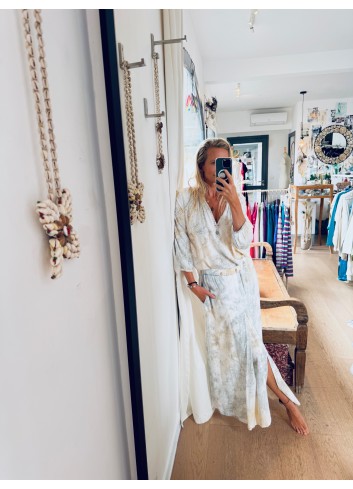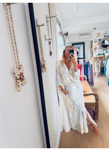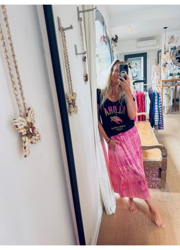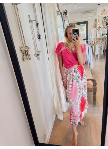 - Jupe longue fluide romantique imprimé tie & dye pastel