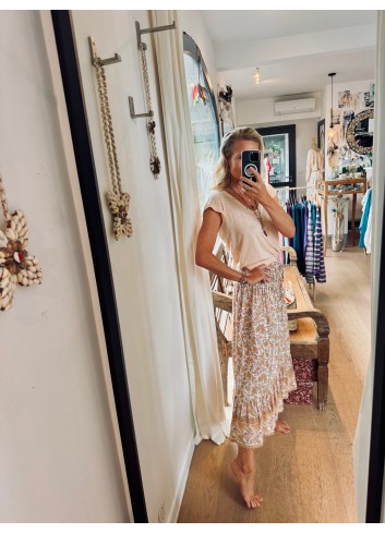 - jupe longue romantique et bohème imprimé exclusif girafe nude