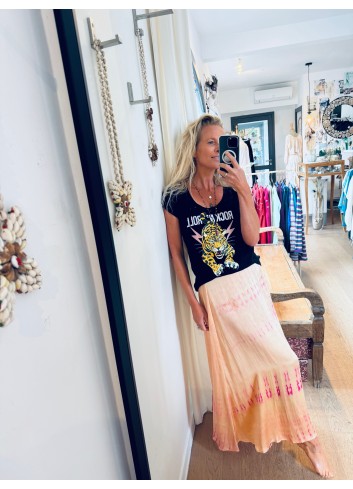 - jupe longue romantique et bohème imprimée tie & dye pastel