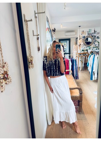 - jupe longue fluide en voile imprimé exclusif Palmiers