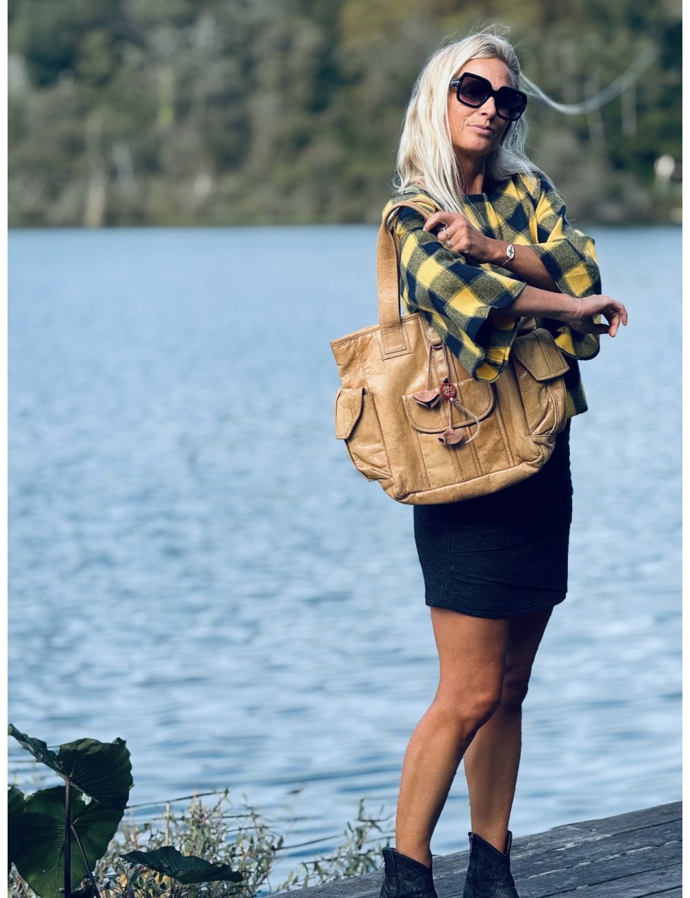 Politique retours (à modifier dans le module "Réassurance")- Sac seau taille moyenne en serpent d'eau chocolat