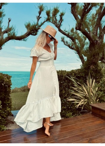 - tresse brodée à la taille milieu devant pour l'ajuster si besoin en la nouant au dos