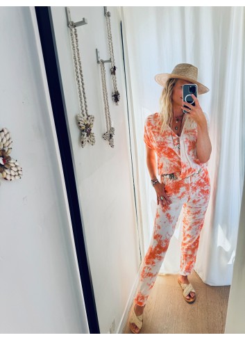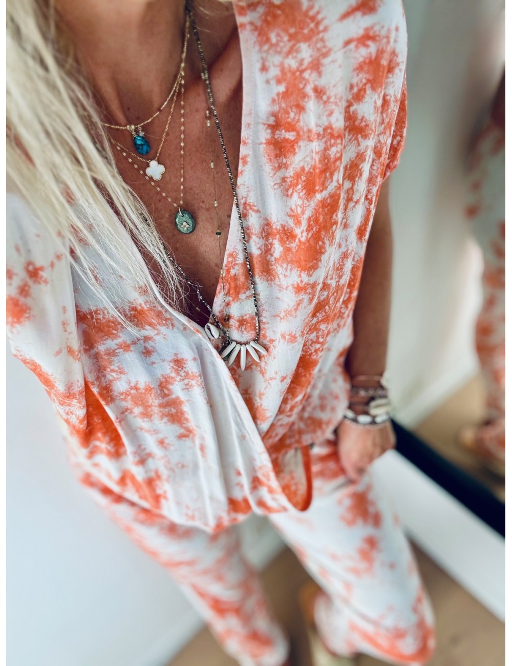 - blouse chic et rock fluide en crêpe tie & dye kaki
