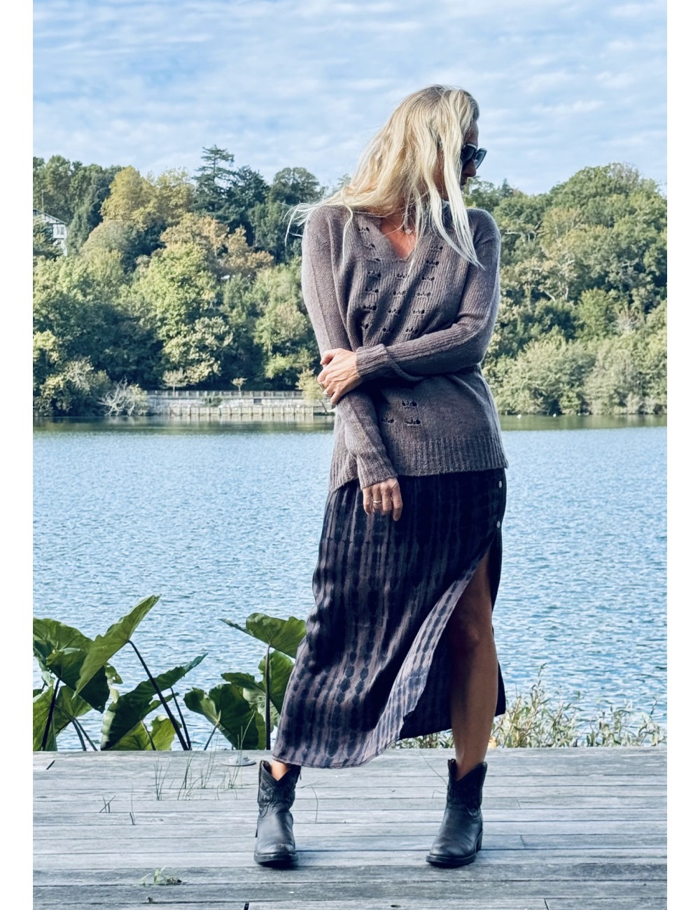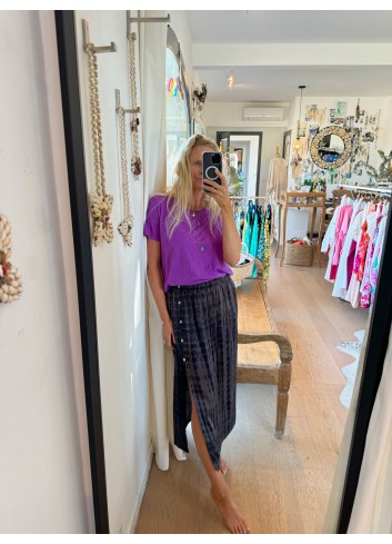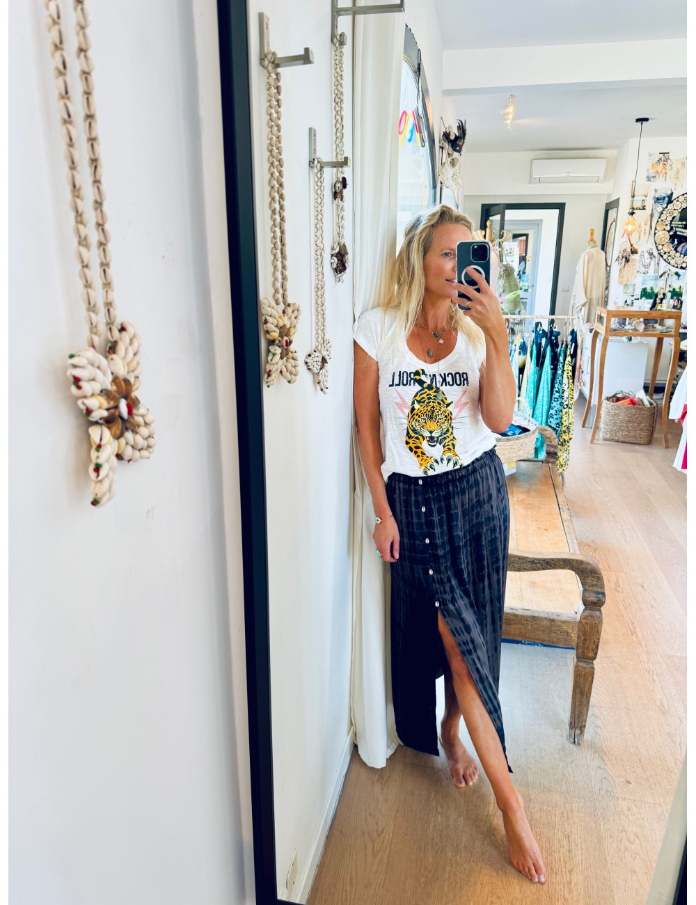 - Fente au côté avec couture coquillages cauri brodés au dessus de la fente