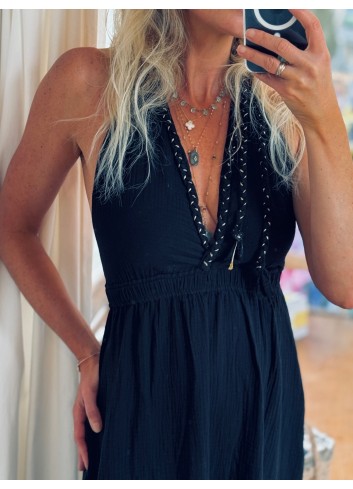 - Liens à nouer à la nuque pour régler la profondeur du décolleté