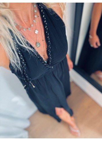 - liens au decollete à nouer sous poitrine pour souligner la taille