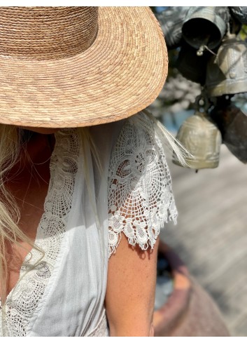 - Décolleté V brodé de pierres ton sur ton + cauri