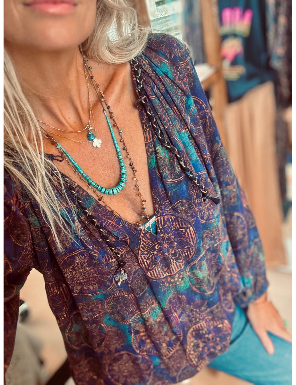 - Blouse fluide en voile imprimé exclusif *Mandala*