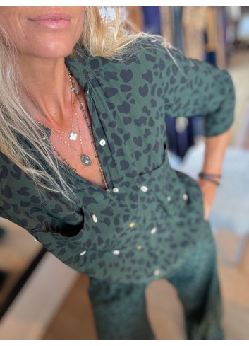 - Robe romantique en popeline de coton imprimée tropic leopard tie & dye