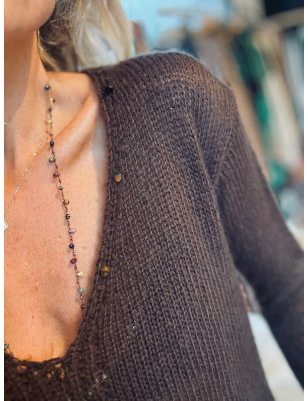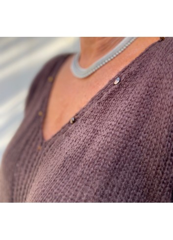 - Décolleté V brodé de pierres ton sur ton + cauri