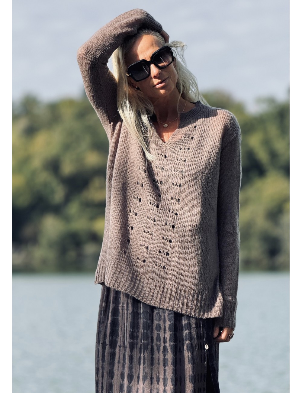 - Décolleté V brodé de pierres ton sur ton + cauri