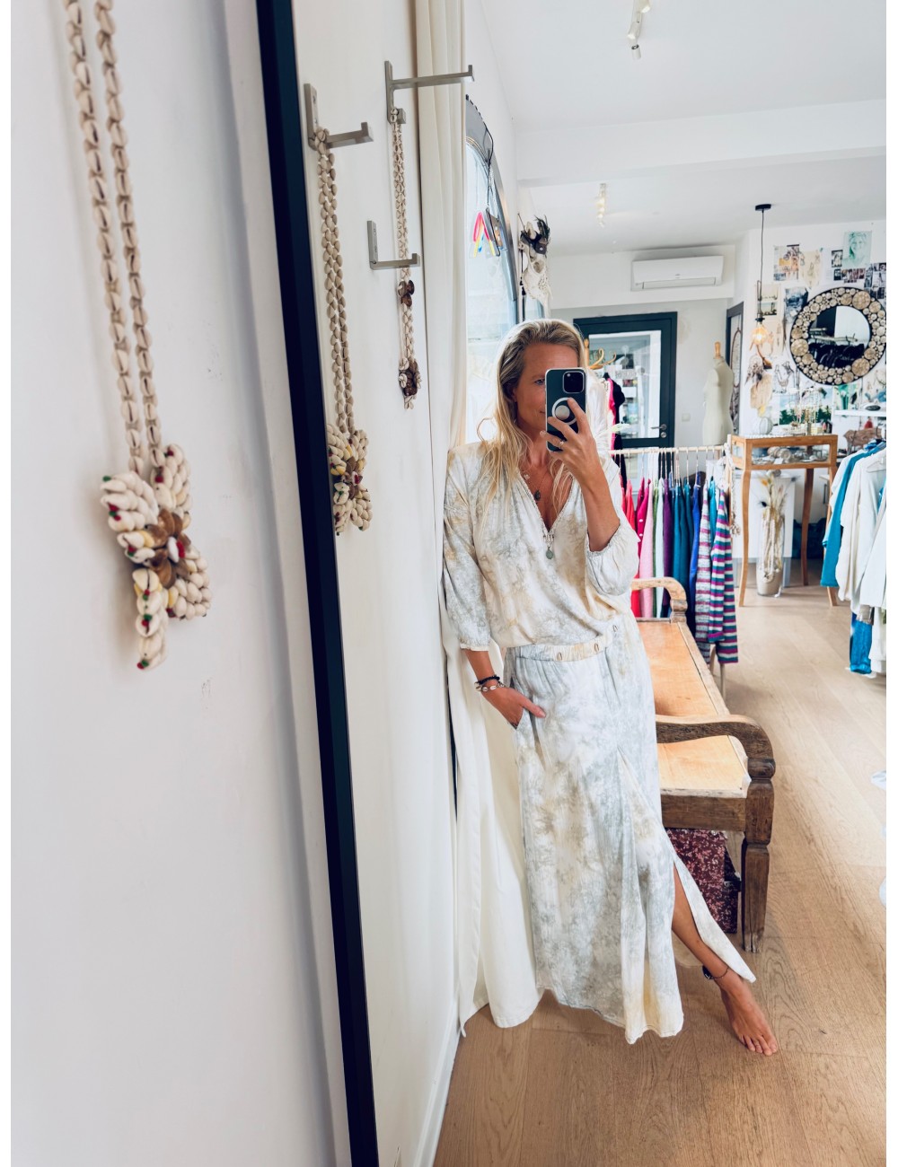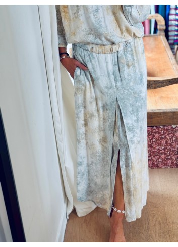 - Jupe longue fluide romantique imprimé tie & dye pastel