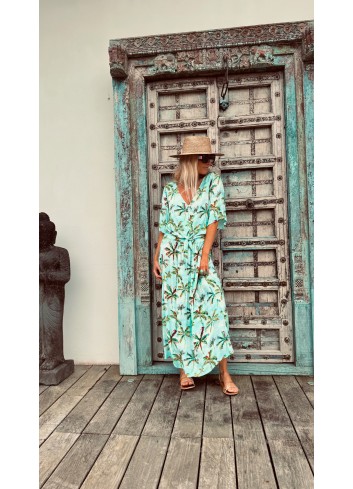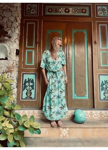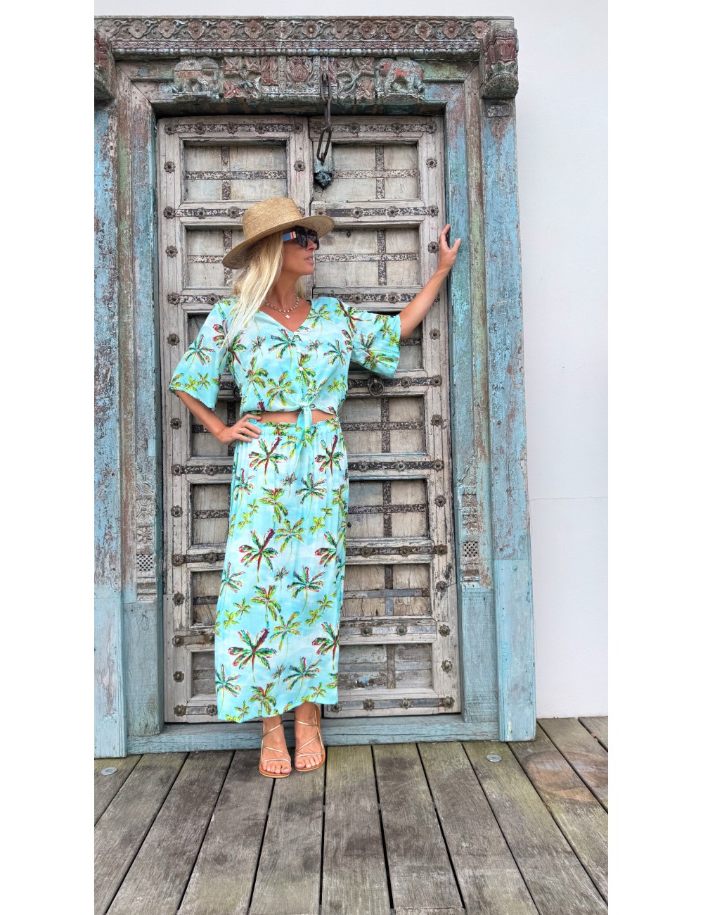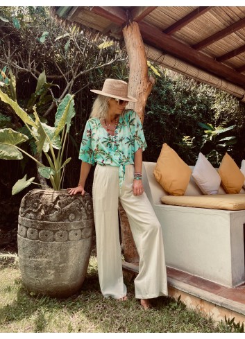 - Blouse fluide en voile imprimé exclusif PALMS FLUO