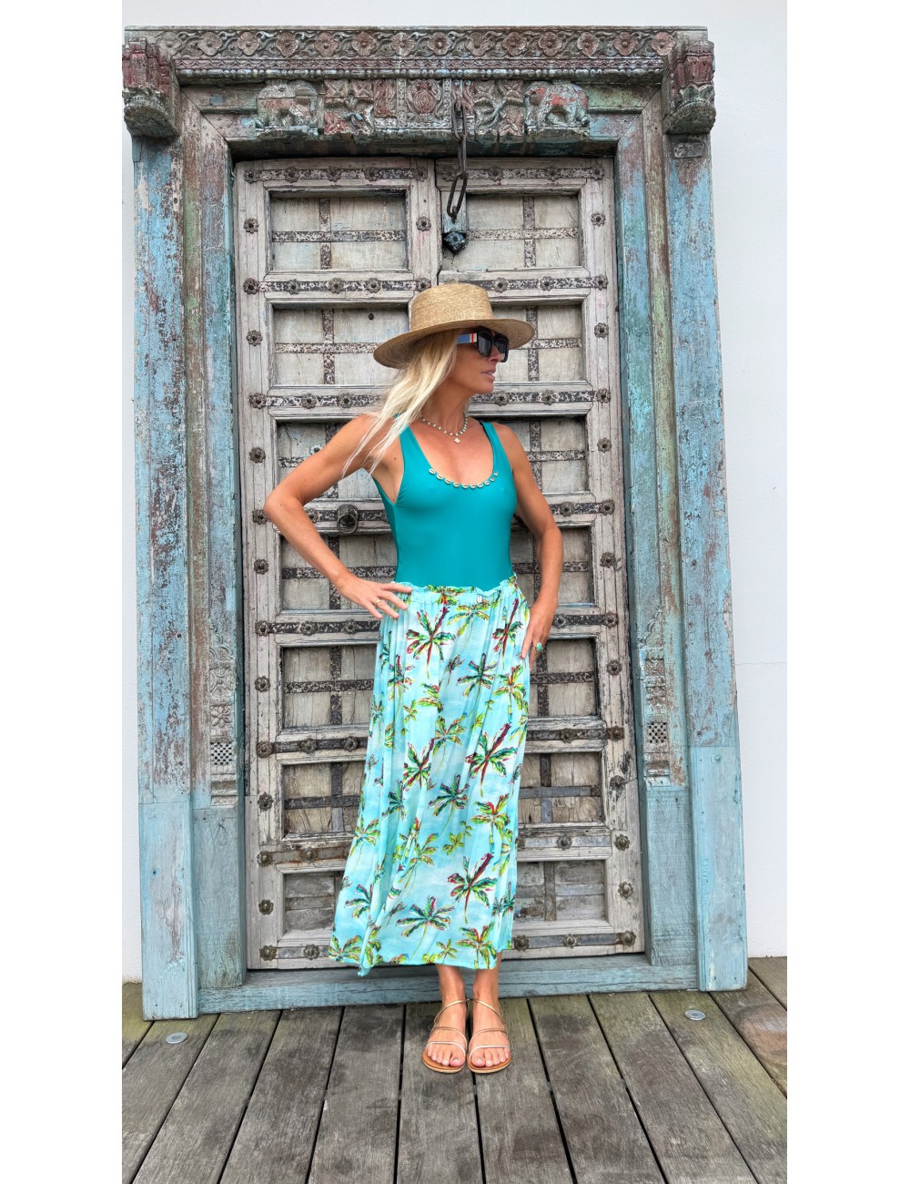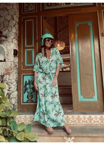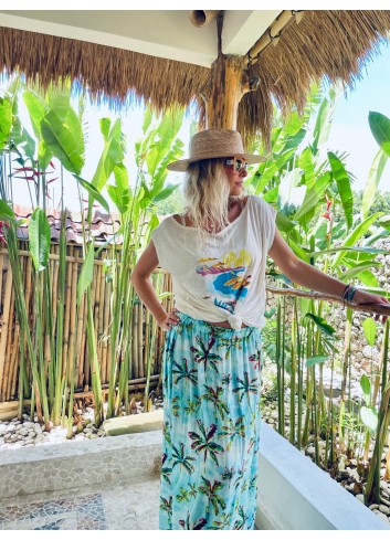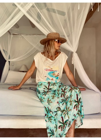 - jupe longue fluide en voile imprimé exclusif Palmiers