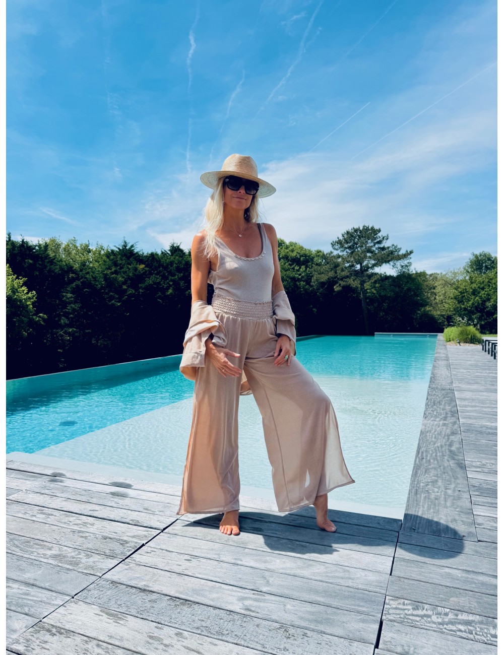 - Pantalon paillettes fluide large en lurex