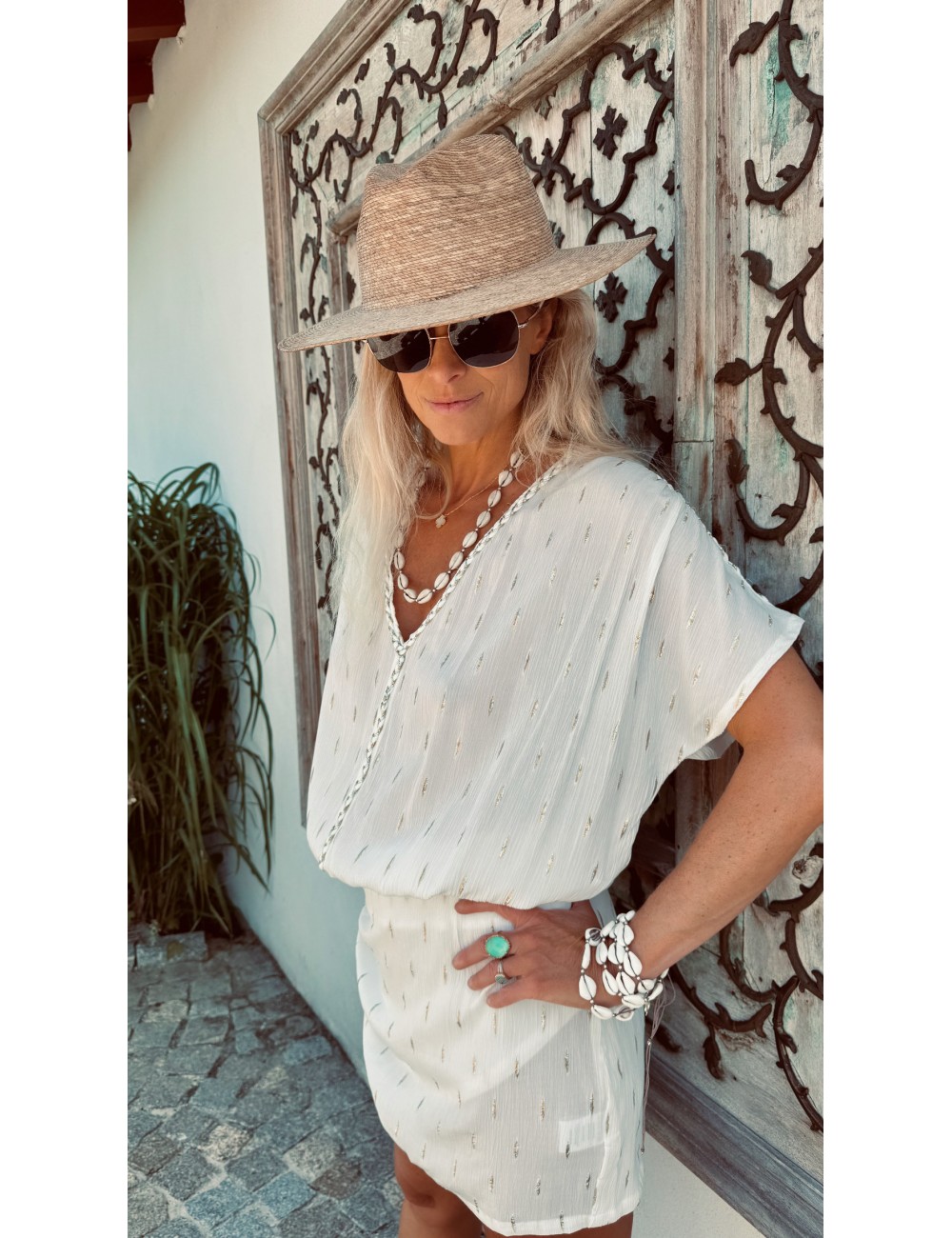 - blouse fluide romantique et bohème en voile plumetis argent/or