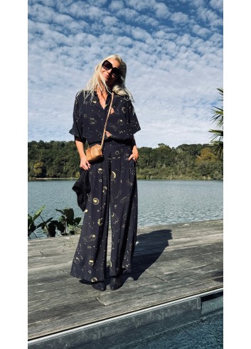 - blouse bohème chic en crêpe imprimé exclusif "ASTRO"
