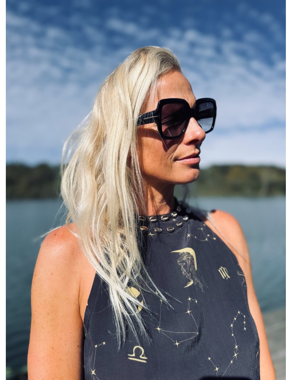 - Liens à nouer à la nuque pour régler la profondeur du décolleté