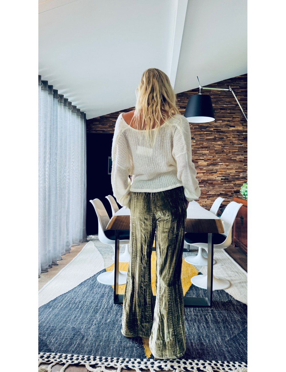 • Put on a pair of shoes.Have someone measure from your crotch to back of the heel, where you want your pants to end.