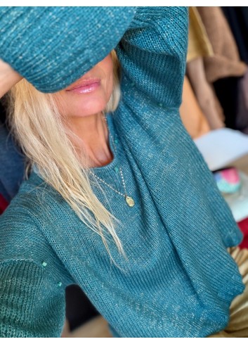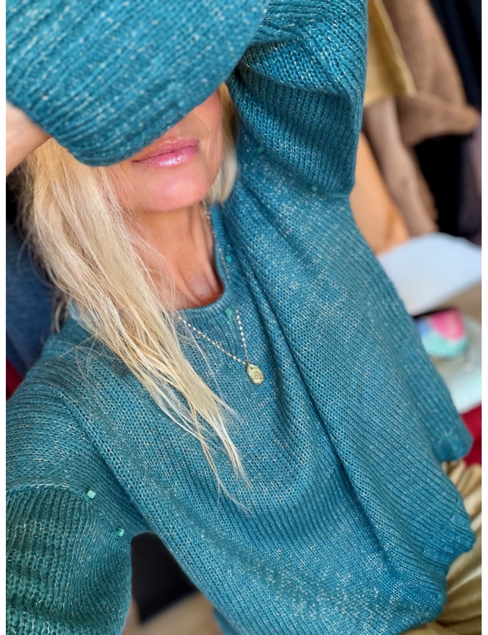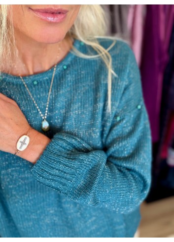 - encolure bateau brodée de coquillages cauri et pierres ton sur ton