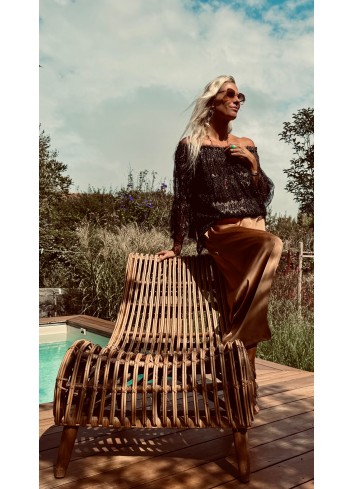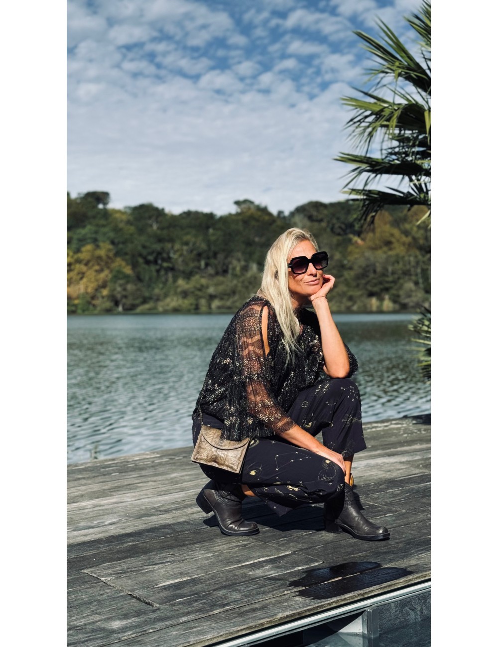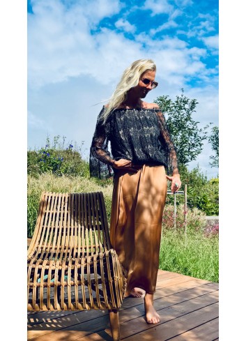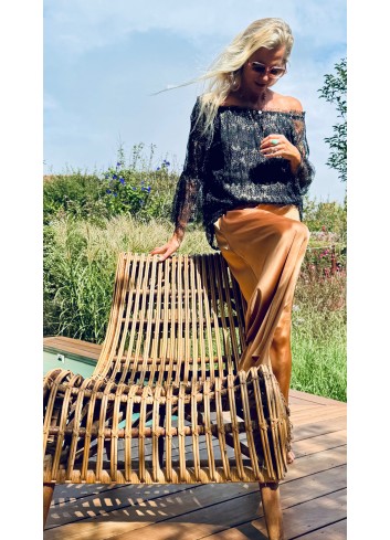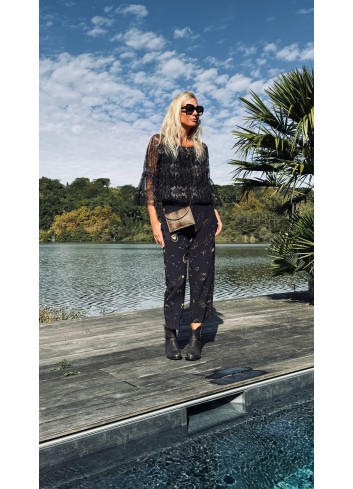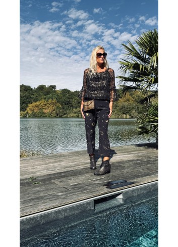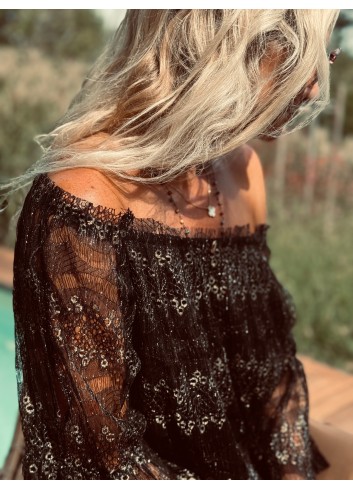 - blouse fluide romantique en guipure de dentelle lurex noire