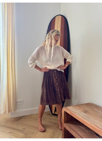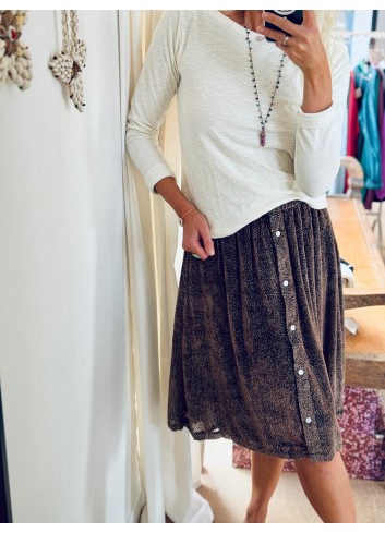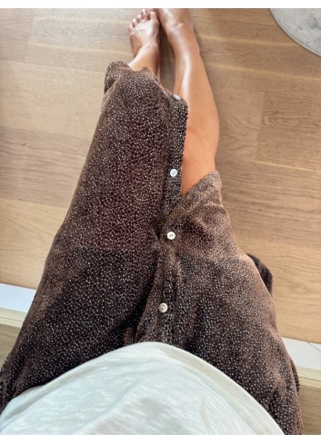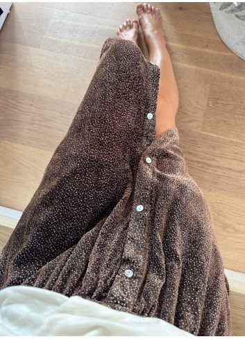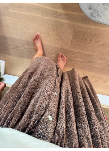 - Fente au côté avec couture coquillages cauri brodés au dessus de la fente