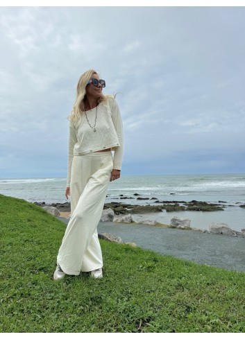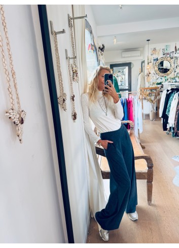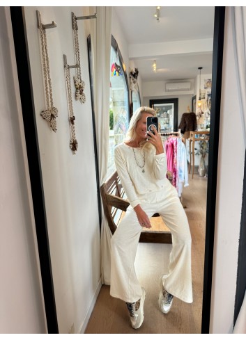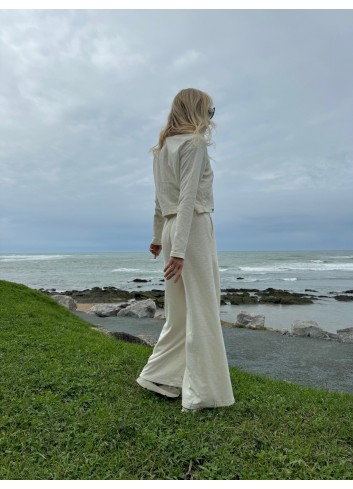 - Veste fluide en panne de velours de soie blanche à porter en costume avec le pantalon