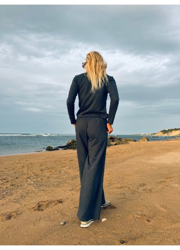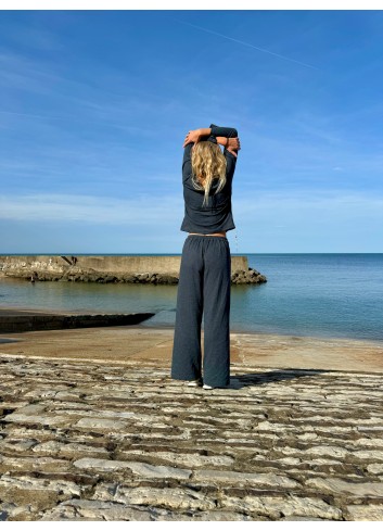- Taille élastique avec cordon de resserrage avec pierres turquoises brodées aux extrémités