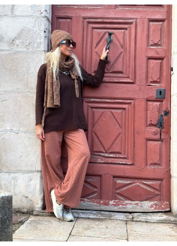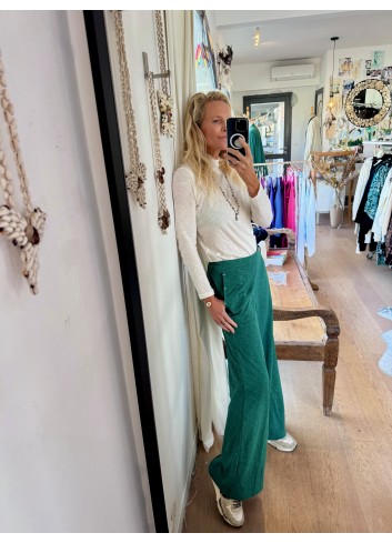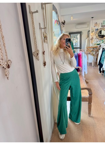 - Pantalon jegging légèrement sarouel en molleton doudou vert émeraude
