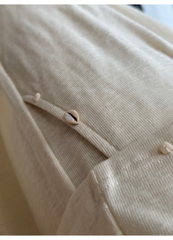 - Poches aux cotés devant brodé de coquillages cauri et turquoises