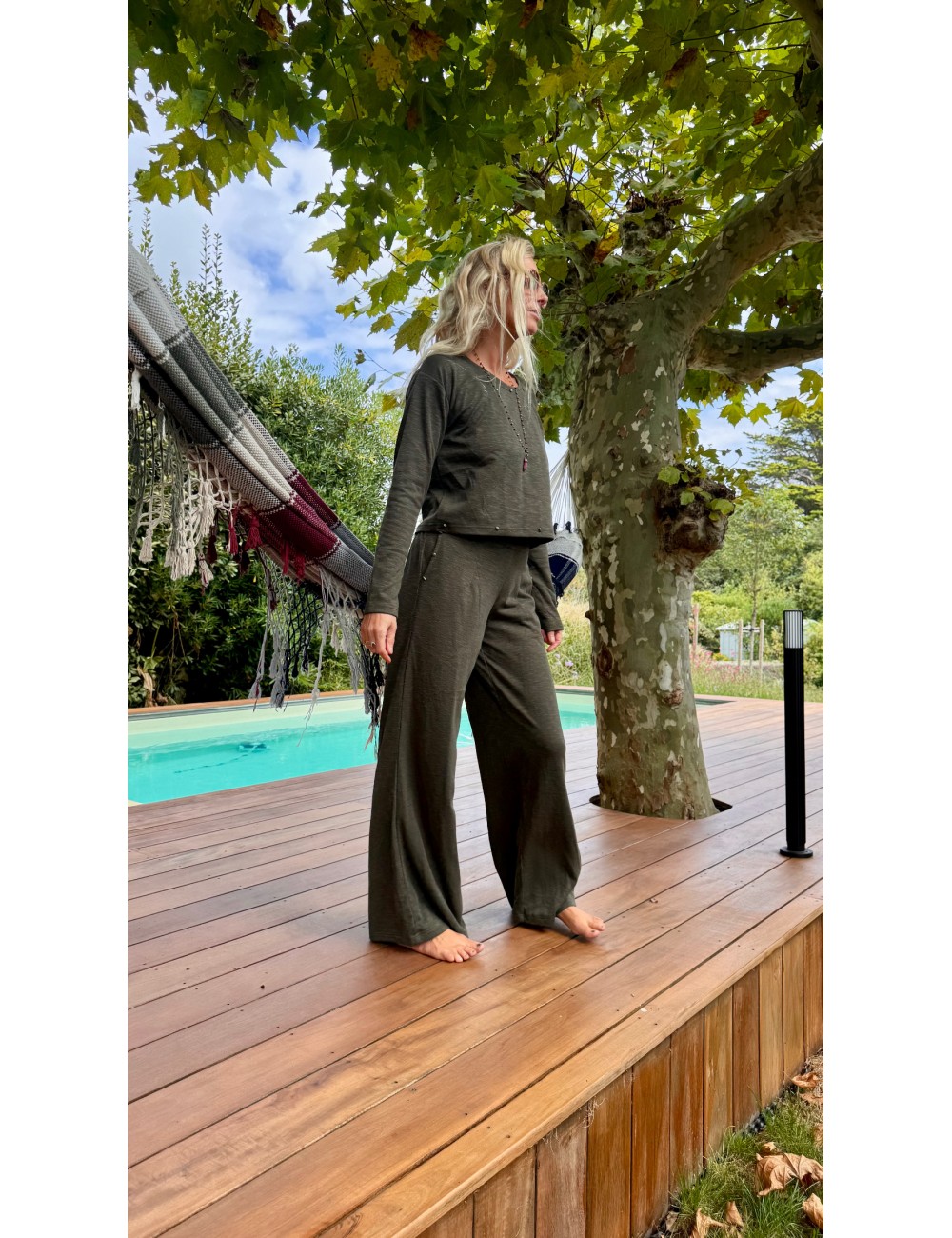- blouse chic et rock fluide en crêpe tie & dye kaki