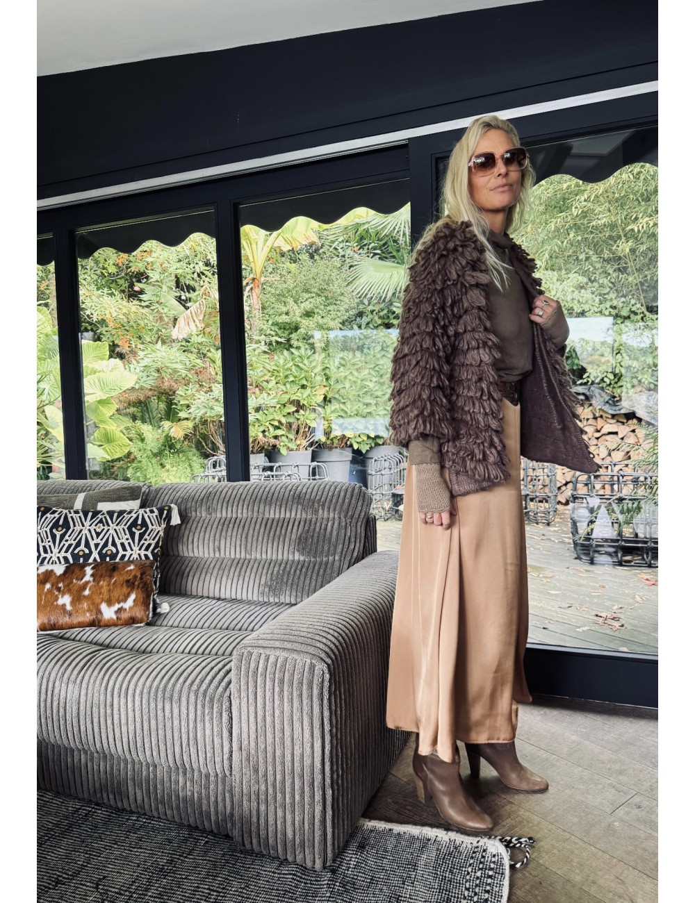 - Fente au côté avec couture coquillages cauri brodés au dessus de la fente