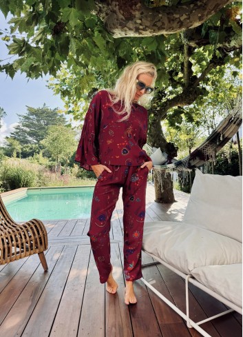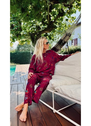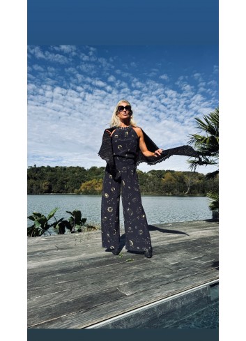 - encolure arrondie brodée de cauris + pierres turquoises