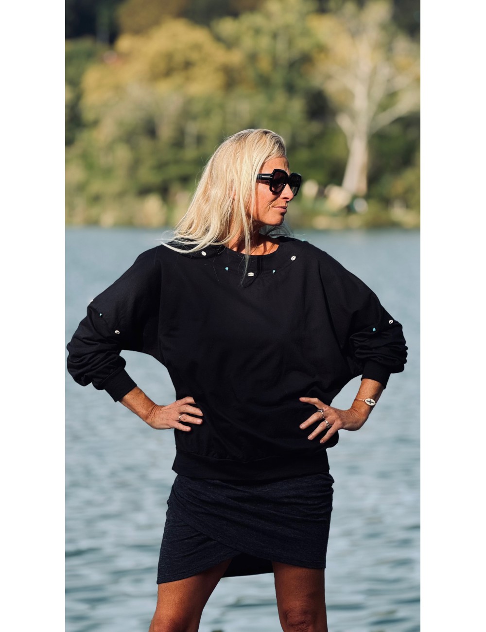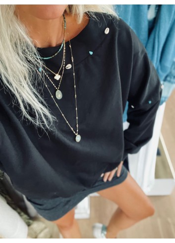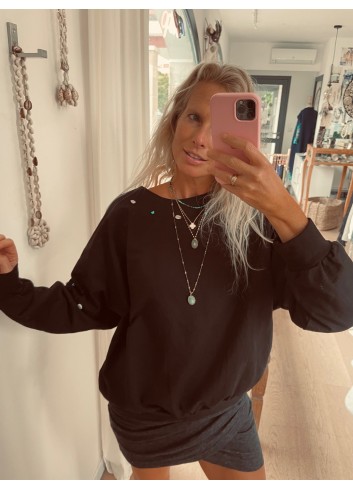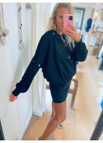 - Joli sweat loose en molleton glacé noir
