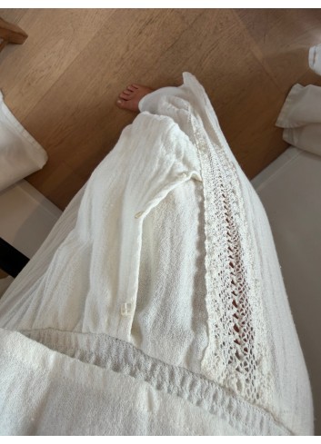 - blouse over size fluide romantique et bohème en gaze de coton et incrustations dentelle