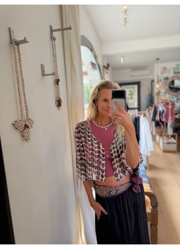 - Veste style kimono brodée de pierres et cauris