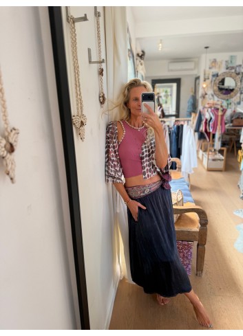 - Jupe fluide chic et romantique en soie plumetis velours