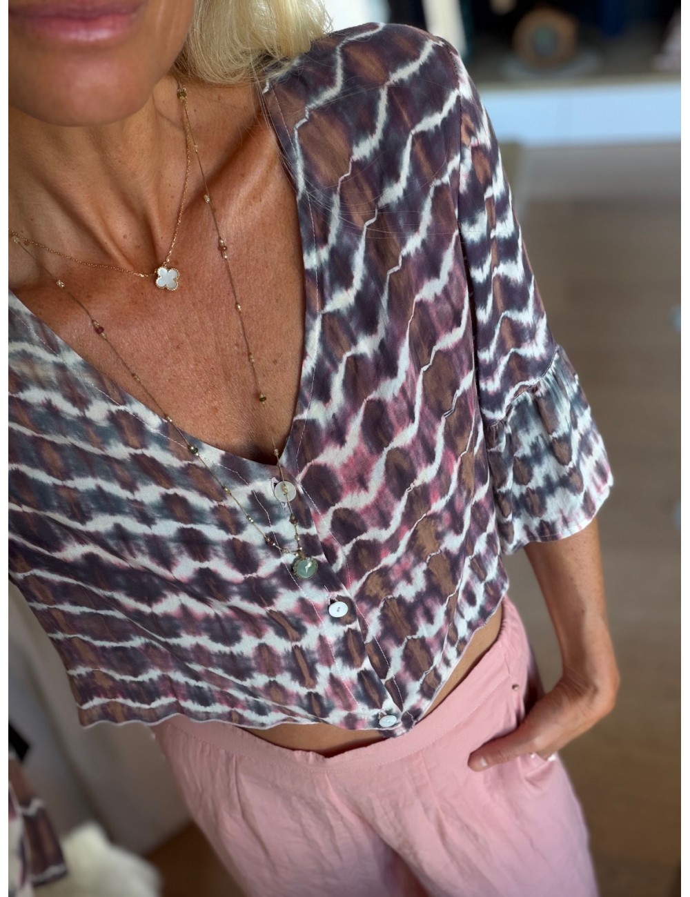 - blouse courte style crop à porter ouverte en veste/chemise loose