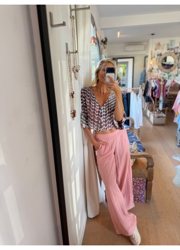 - Pantalon fluide large en crepe imprimé exclusif