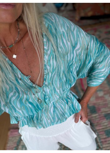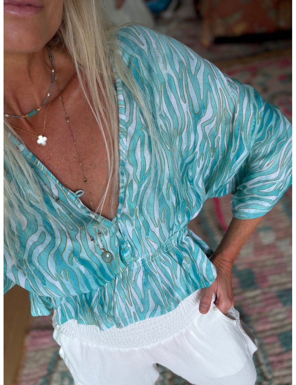 - blouse courte fluide imprimé zebra tie & dye aqua