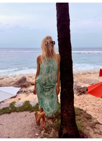 - Robe longue ample fines bretelles en viscose voile imprimée tie & dye