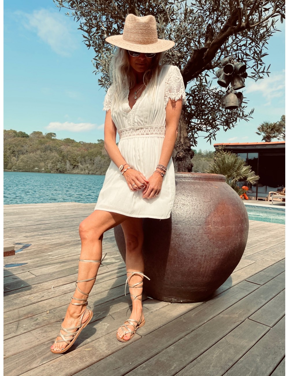 - Encolure V finition dentelle et pierre brodée au decolleté