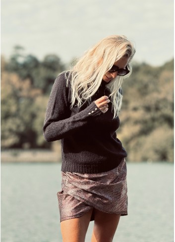 - Fente au côté avec couture coquillages cauri et pierres turquoises brodés au dessus de la fente