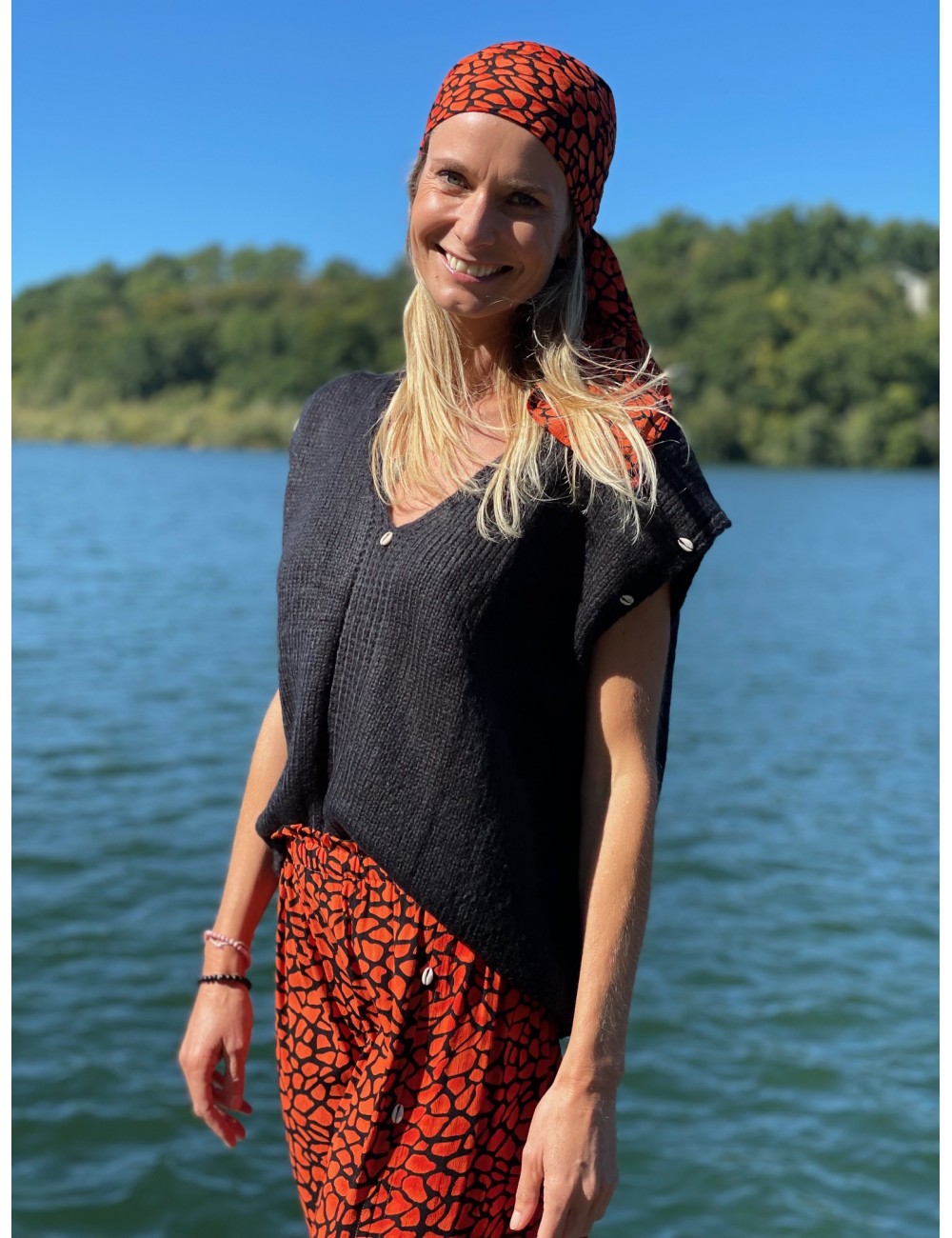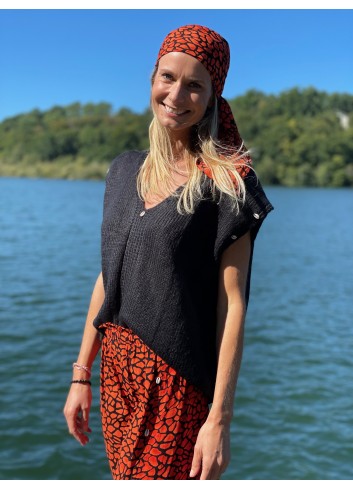 Coloris citrus / celadon / noir 50% coton 50% Viscose