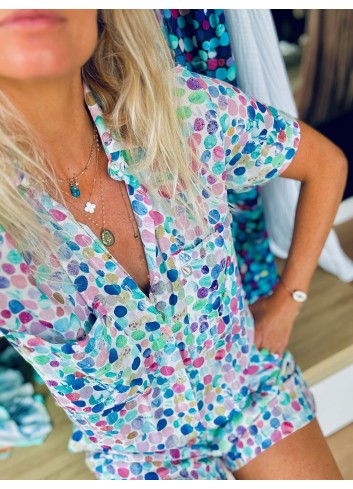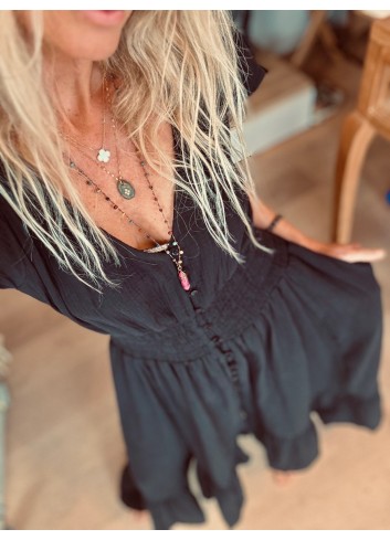- Décolleté V boutonnage milieu devant jusqu'en bas