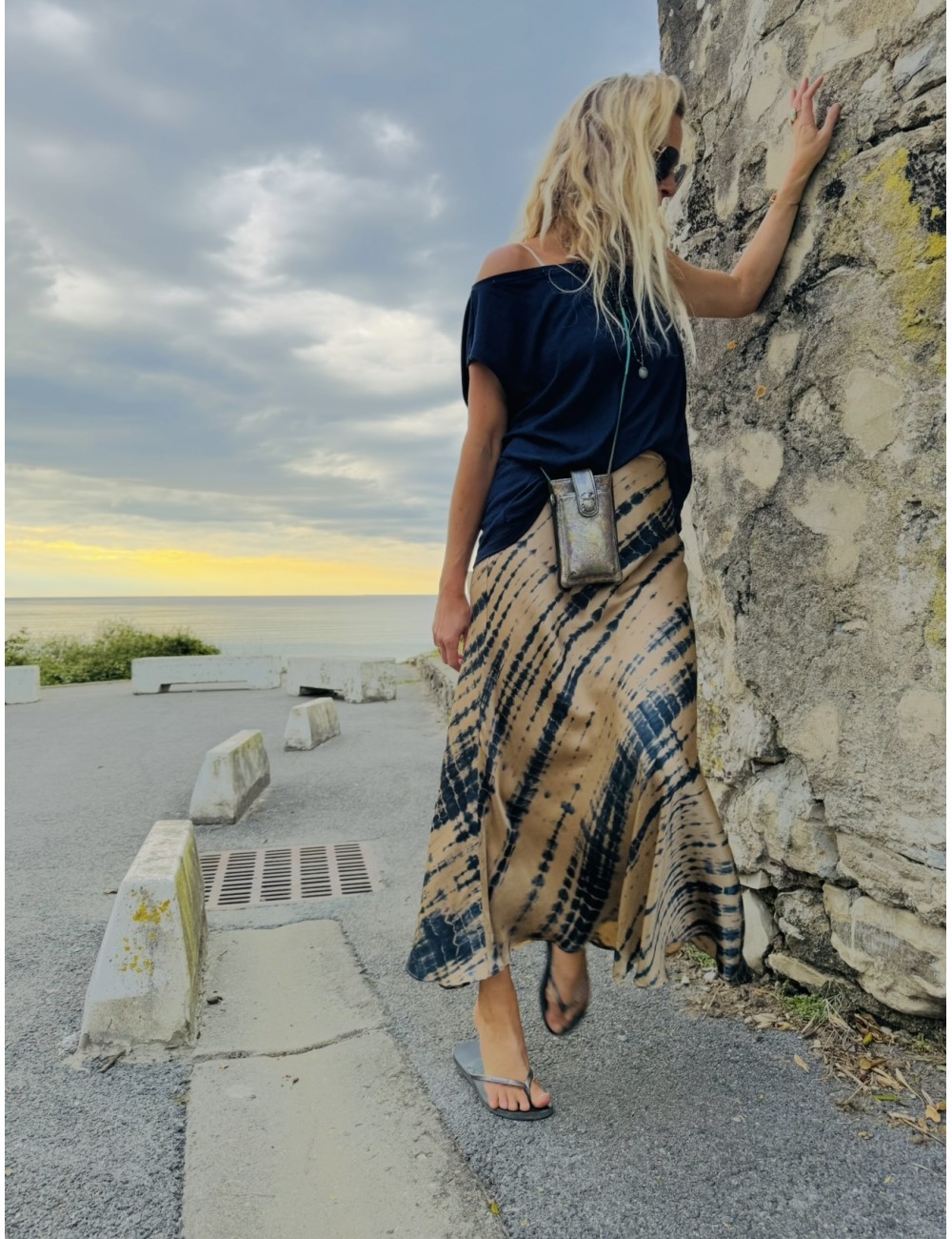 Politique retours (à modifier dans le module "Réassurance")- Chemise en soie tie & dye turquoise