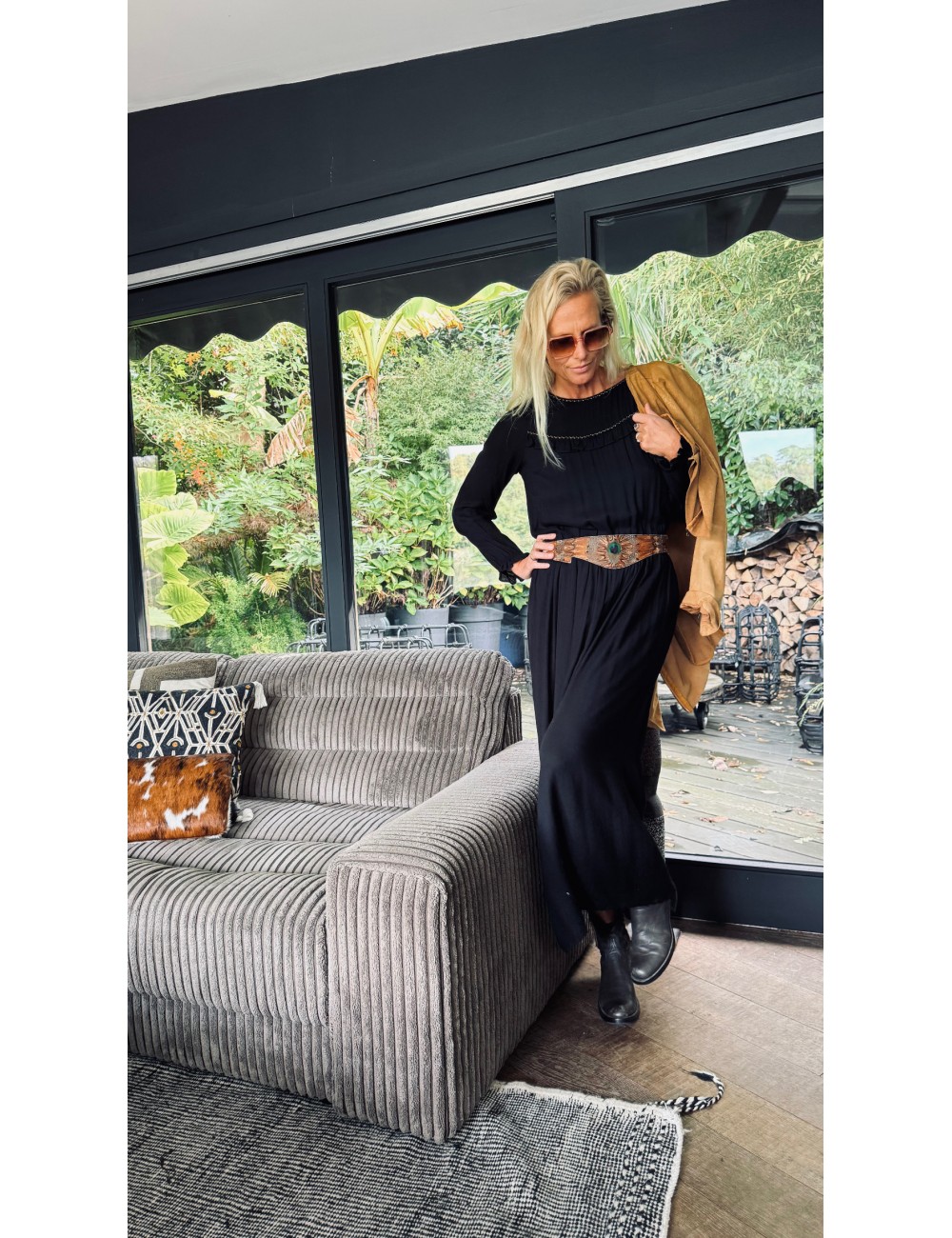 - tresse brodée à la taille milieu devant pour l'ajuster si besoin en la nouant au dos